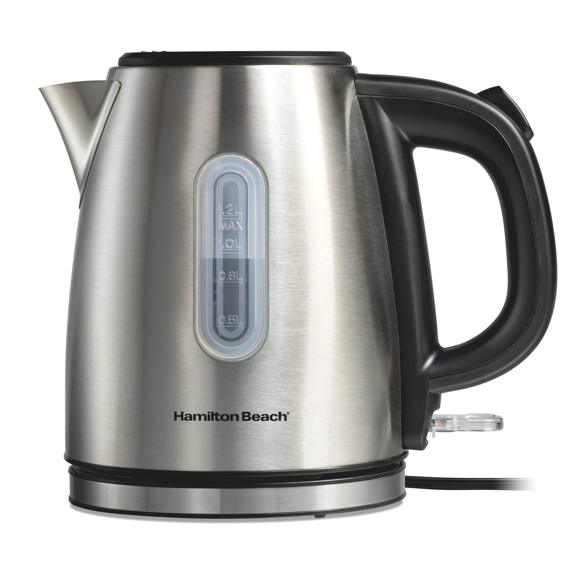 Boil water quickly with the Hamilton Beach Stainless Steel Electric Kettle, perfect for tea, coffee, and hot beverages. Features ultra‑fast heating and automatic shutoff for safety and convenience. Durable stainless steel construction delivers long‑lasting performance. 1.2 L capacity is ideal for home or office use. Sleek, modern design enhances any kitchen countertop.